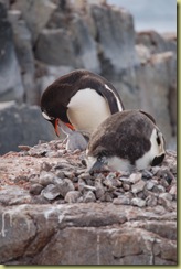 Gentoos are preyed upon by Skuas who are the vultures of the sea. They have vicious beaks and will eat anything. They are known for defending their territory and attack anything (including intrepid explorers) who invade their space.