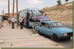 On most occasions, whenever our coach stops to let us off to see something, go to the toilet or simply stretch our legs, a car / van quickly appears and (as in this case) parks very close to the front of the coach so that whatever it is selling can be shown (in this case some rather dodgy dates).