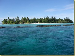The Karumba House Reef lies just off an atoll which has a hotel on it as well as mooring for boats. The Dhoni takes us