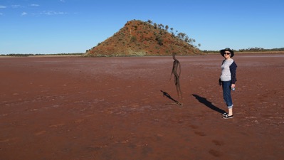 In 2003, Antony Gormley, and English artist and sculptor famous for the Angel of the North statue in Gateshead (which when we lived in the North East, we saw being driven in parts along the old A1 to Gateshead for assembly), placed 51 cast stainless steel figures, many of them representing the people who lived in Menzies, across the Lake Ballard salt pan. He persuaded local people to strip naked, did a digital scan of their bodies, reduced the images by 66 per cent, turned them into sand moulds and cast them in stainless steel alloy made from metal ores found in the area.
