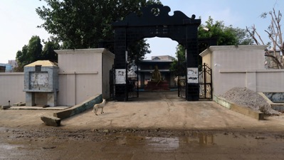 Inside the gatehouse is a fridge / freezer used to store bodies until the family have assembled for the cremation.